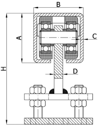 Vodící kladka pro brány pevná s výškovým nastavením - polyamidové rolny