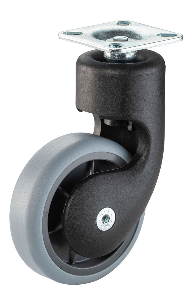 Designové kolečko v plastové vidlici s měkkým pryžovým kolem