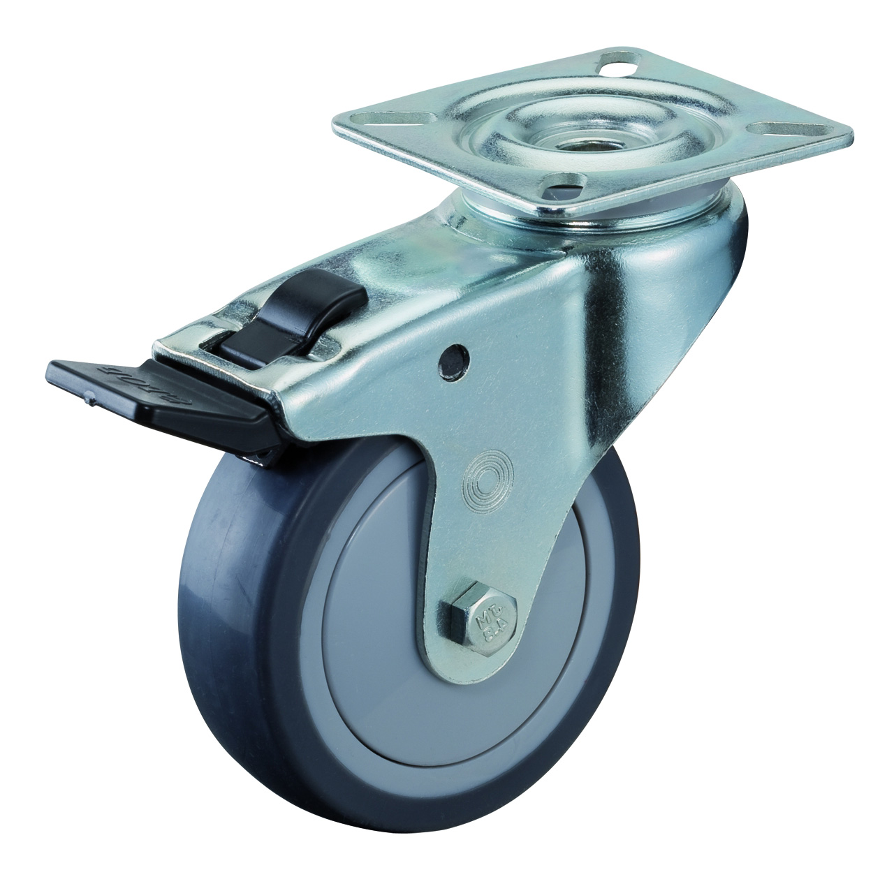 | kolečka série A85 - Otočné provedení + brzda s uchycením na čtyři šrouby - kuličkové ložisko | |||||||||||