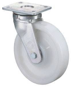 vidlice: ocelový pozinkovaný masivní svařenec s dvojitým kuličkovým věncem, kolo: bílý polyamid na kuličkovém ložisku