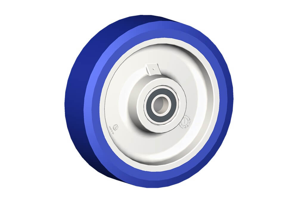 • kolo ADINYL SOFT - disk kola bílý polyamid, běhoun kola polyuretan modré barvy, tvrdost Sh 87 +/- 3 Sh, odolné vůči teplotám -30 až +80 °C, kuličkové ložisko
