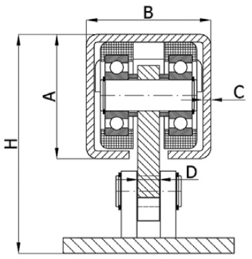 Vodící kladka pro brány výkyvná bez výškového nastavení - polyamidové rolny